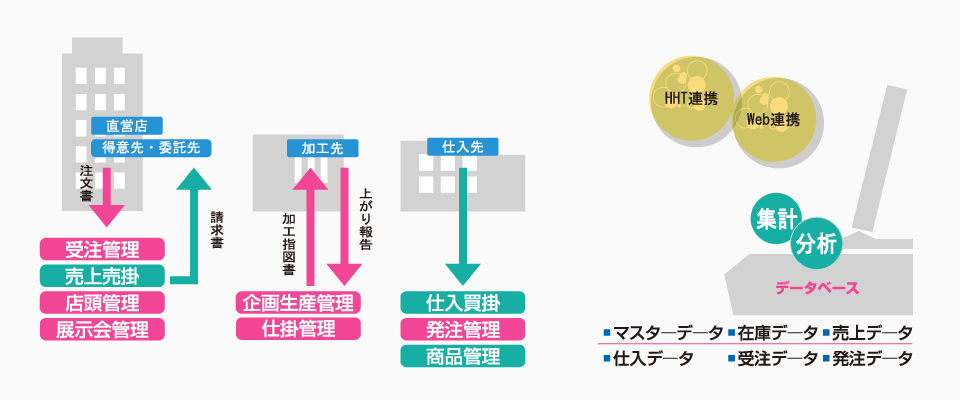 商品特性に応じた入力方式を展開、売上・売掛・請求回収までトータルに管理できます。
