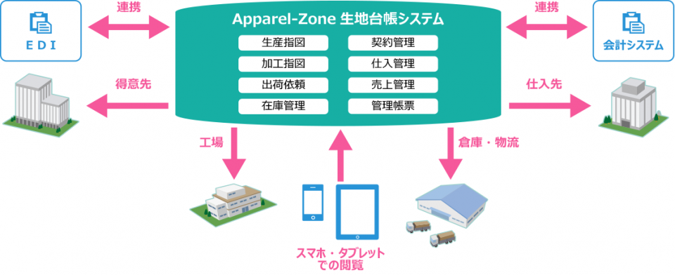 - 品番、色、柄ごとに生産指図~販売までをリアルタイムで確認可能に